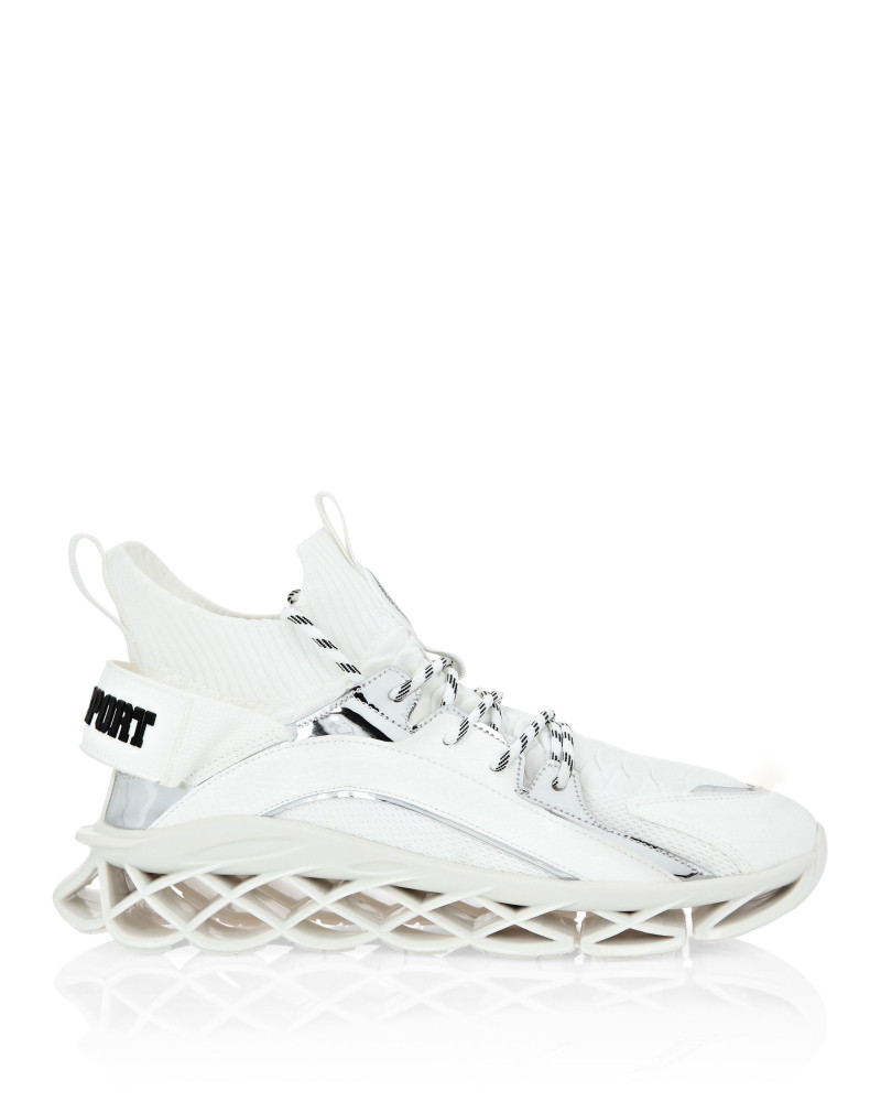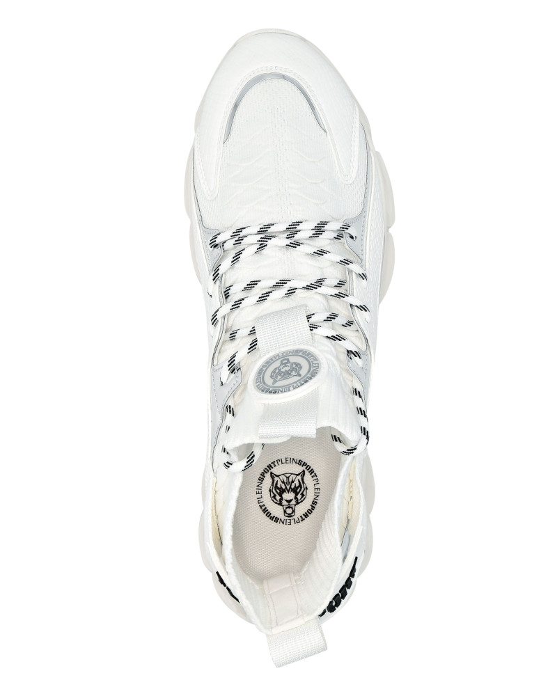 Верхняя часть этих эксклюзивных высоких кроссовок Tiger адаптируется к движениям стопы для идеальной и надежной посадки и обеспечивает эффективную и плавную амортизацию. ● Тканевый верх обеспечивает надежную и плотную посадку ● Люверсы объединяют отделку из нескольких материалов ● Двухцветные шнурки ● Прорезиненная нашивка со знаковым Тигром на язычке ● Логотип Plein Sport на заднике ● Высокотехнологичная прорезиненная, эргономичная, амортизирующая, сверхлегкая перфорированная подошва ● Форма подошвы для оптимального сцепления с поверхностью
