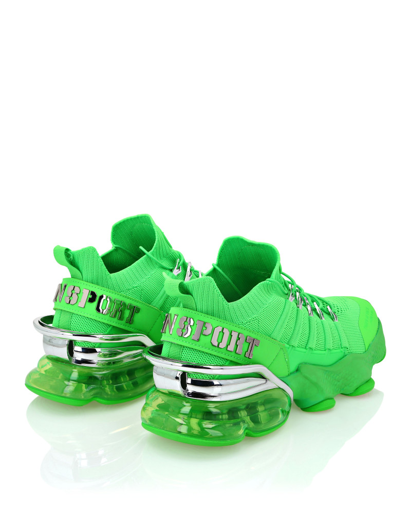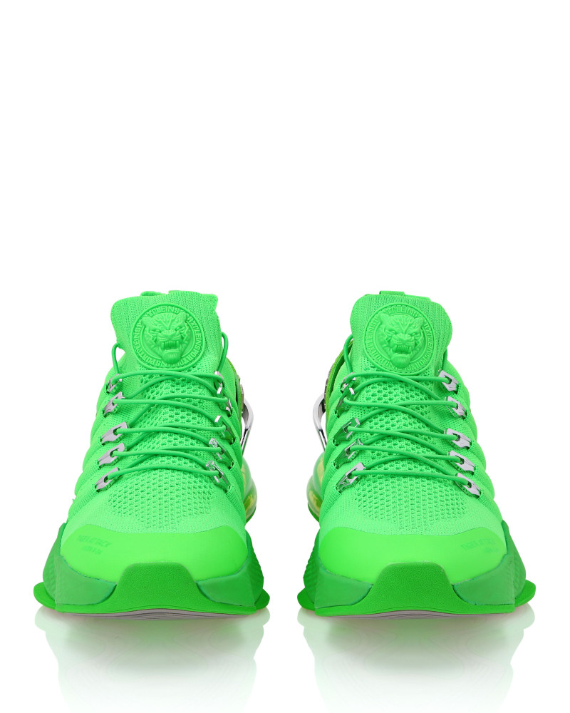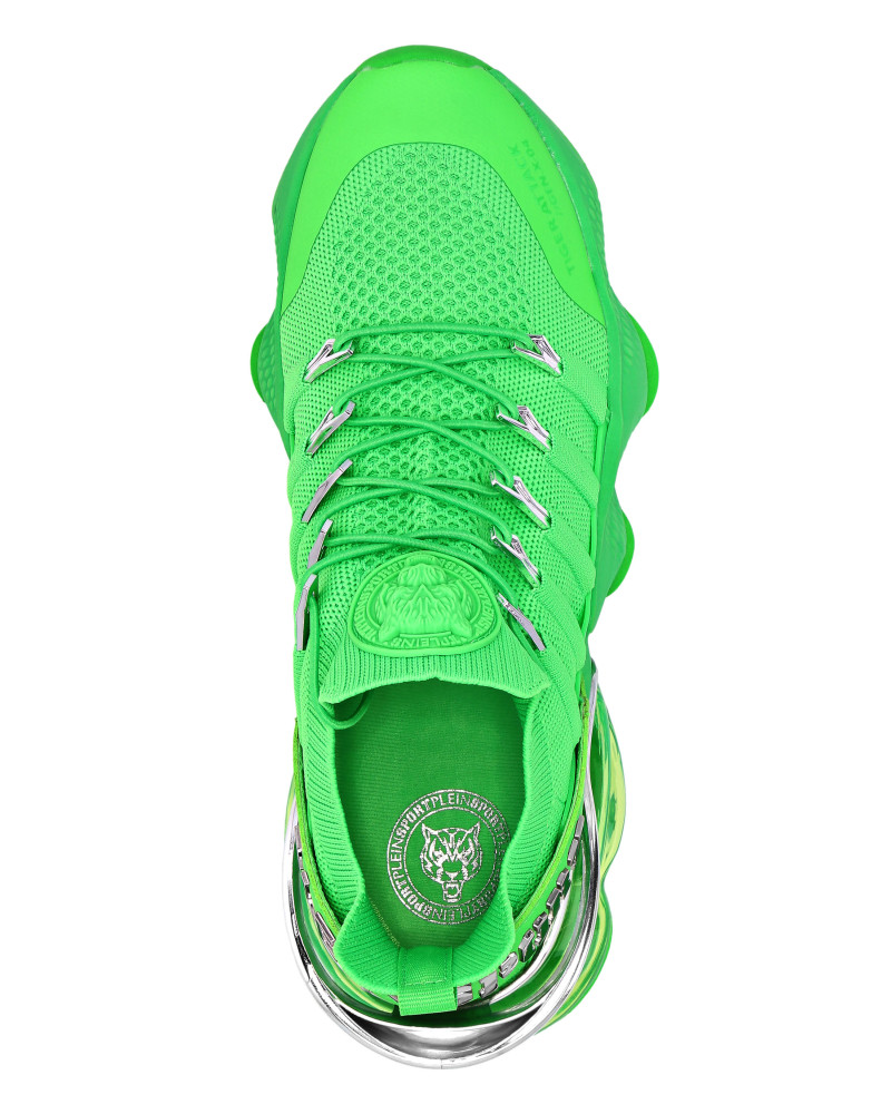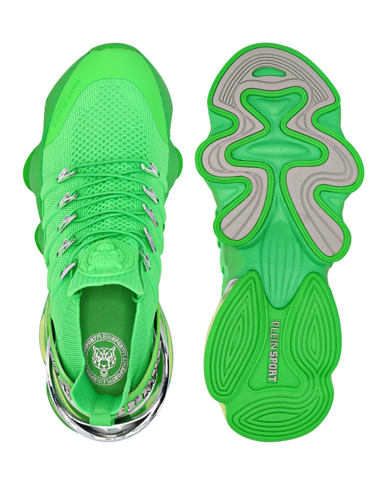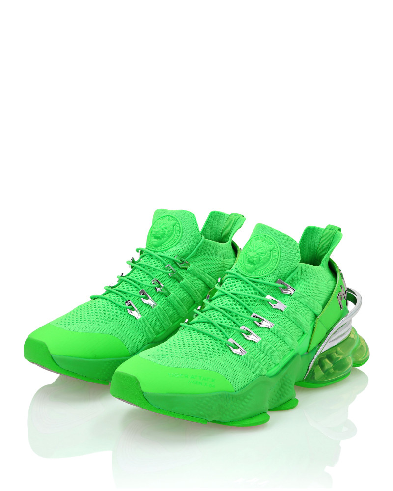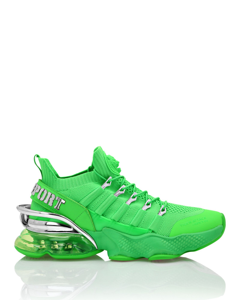 Беговые кроссовки Tiger Attack Gen. X.04 созданы, чтобы помочь вам выйти за пределы своих возможностей благодаря высокотехнологичным материалам и привычному стилю Plein Sport. ● Верхняя часть кроссовок из дышащей сетки для удобной и эргономичной посадки ● Эластичные трубчатые шнурки с металлическими люверсами ● Ремешок с логотипом и вставка на пятке ● Металлические стабилизаторы пятки с гальваническим покрытием ● Амортизирующая, ультралегкая, прозрачная резиновая межподошва из высокотехнологичного материала ● Рифленая подошва для оптимального сцепления с поверхностью ● Съемная стелька