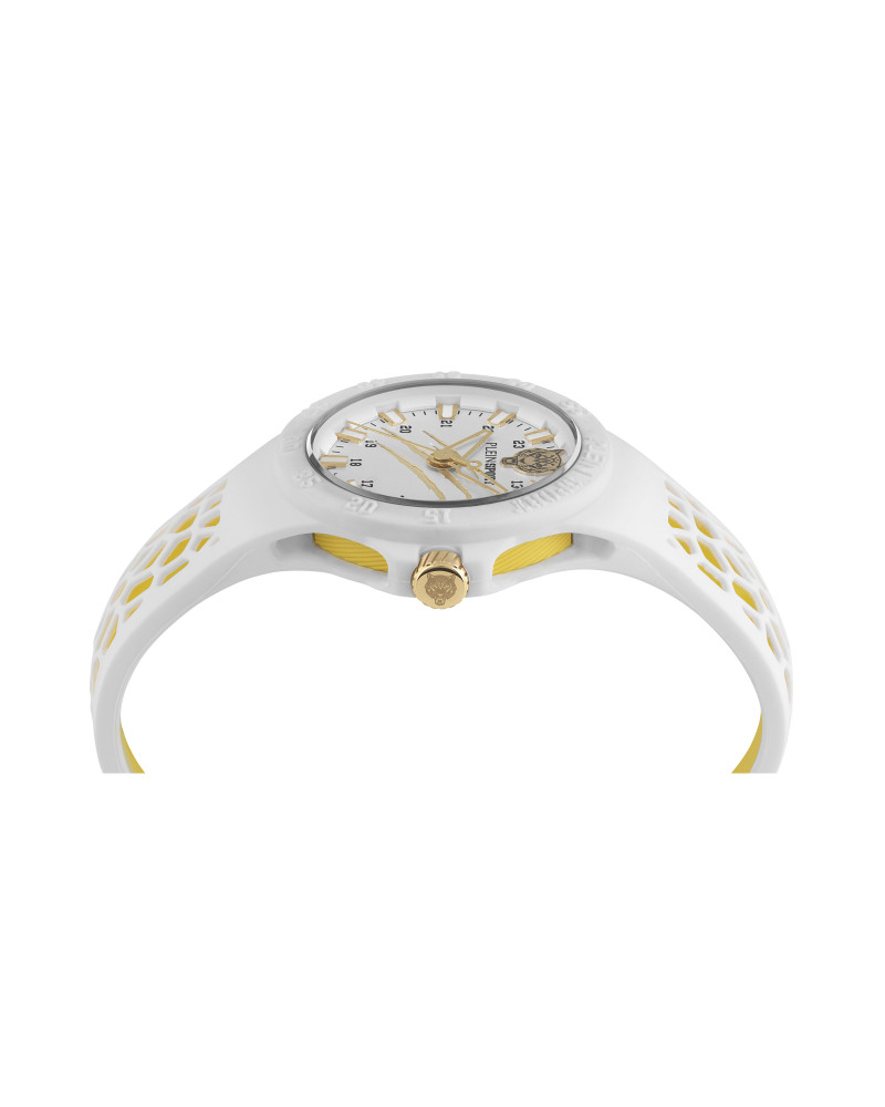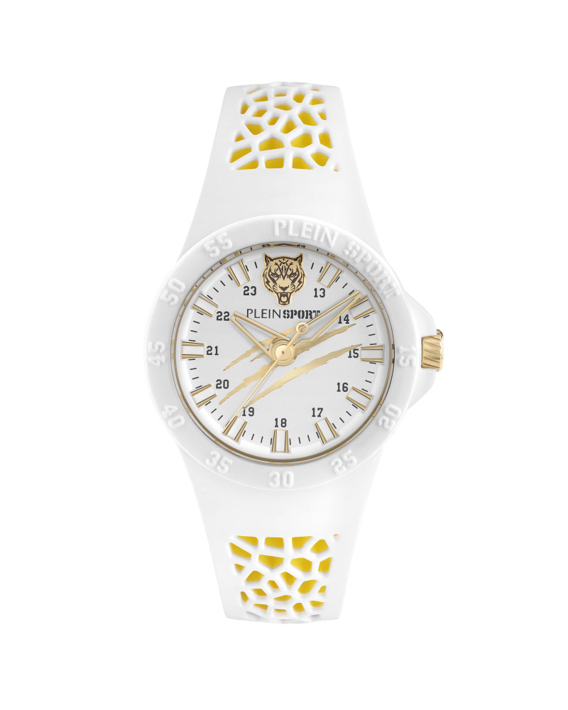 Часы THUNDERSTORM 3 HANDS от PLEIN SPORT созданы для того, чтобы нарушать установленные правила. Эти часы с их непокорным духом и ярким рисунком не подведут вас во время приключений. Техническое описание Размеры корпуса: 40 mm Цвет корпуса: WHITE / IP YELLOW GOLD details Тип ремешка: SILICON Цвет ремешка: WHITE Водонепроницаемость ATM: 5 ATM