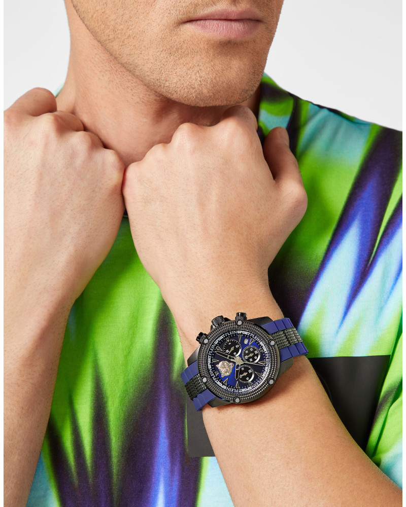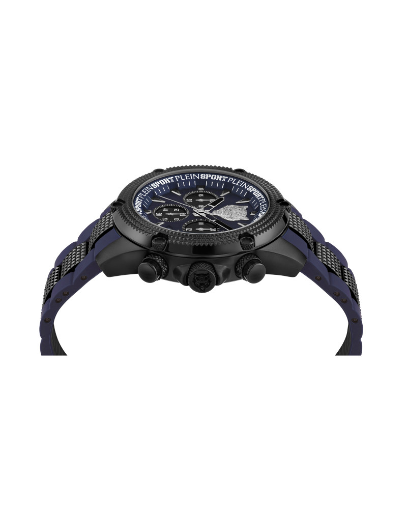 Держитесь крепче... сейчас начнется веселье! ● Новые часы HURRICANE от PLEIN SPORT с тщательно продуманным дизайном ручной работы притягивают взгляды. ● Роскошные сочетания цветов придают этим неверояным часам некоторую утонченность. ● Техническое описание ● Размеры корпуса: 44 mm ● Цвет корпуса: IP BLACK ● Тип ремешка: SILICON + SS ● Цвет ремешка: BLUE ● Водонепроницаемость ATM: 5 ATM