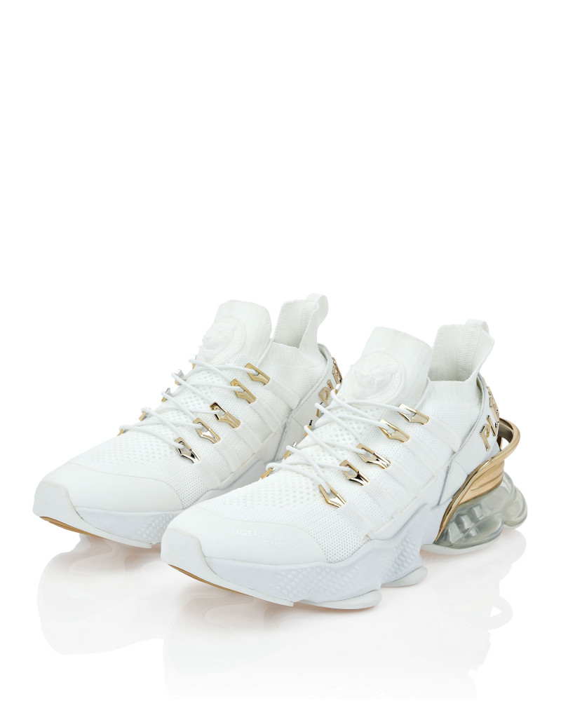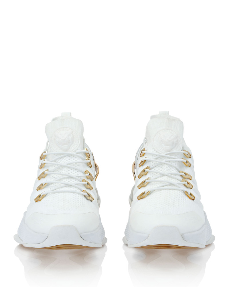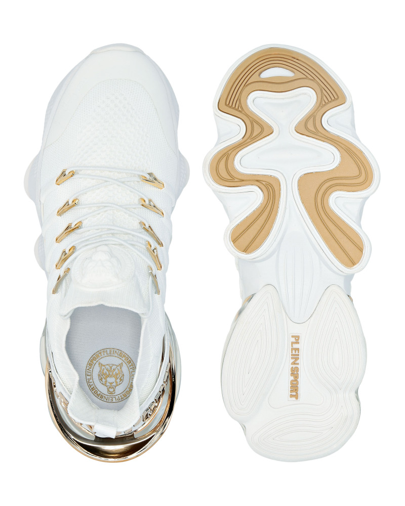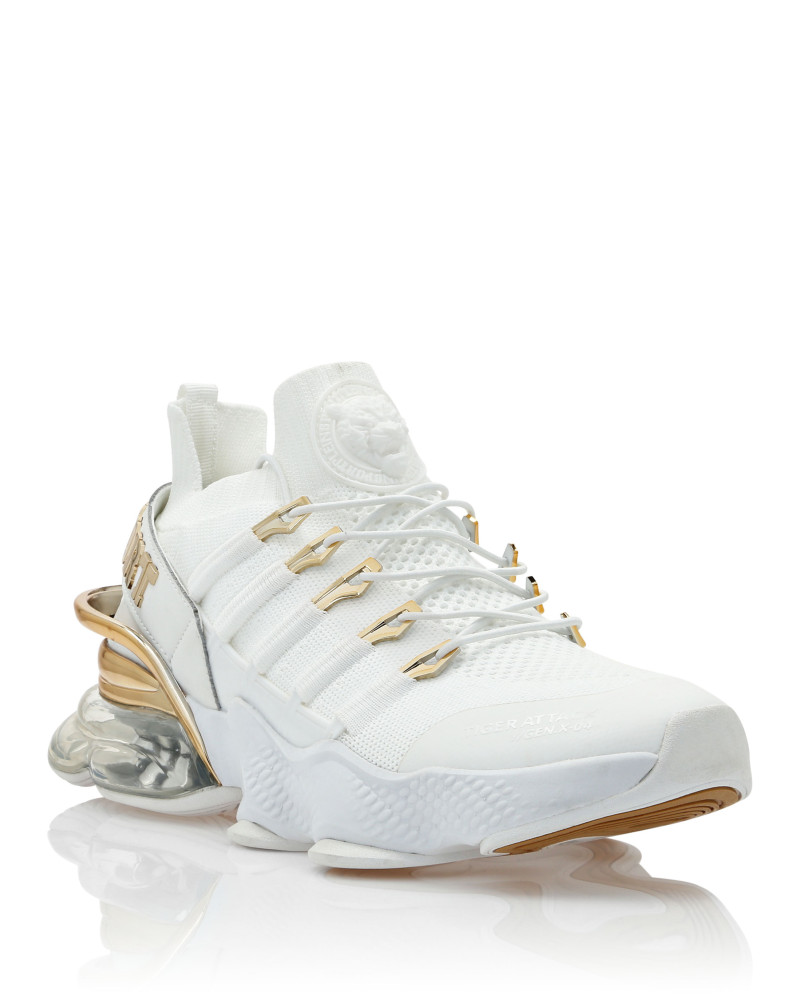 Беговые кроссовки Tiger Attack Gen. X.04 созданы, чтобы помочь вам выйти за пределы своих возможностей благодаря высокотехнологичным материалам и привычному стилю Plein Sport. ● Верхняя часть кроссовок из дышащей сетки для удобной и эргономичной посадки ● Эластичные трубчатые шнурки с металлическими люверсами ● Ремешок с логотипом и вставка на пятке ● Металлические стабилизаторы пятки с гальваническим покрытием ● Амортизирующая, ультралегкая, прозрачная резиновая межподошва из высокотехнологичного материала ● Рифленая подошва для оптимального сцепления с поверхностью ● Съемная стелька