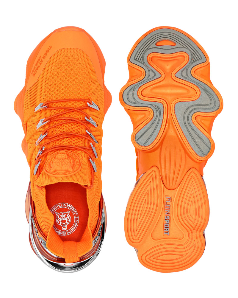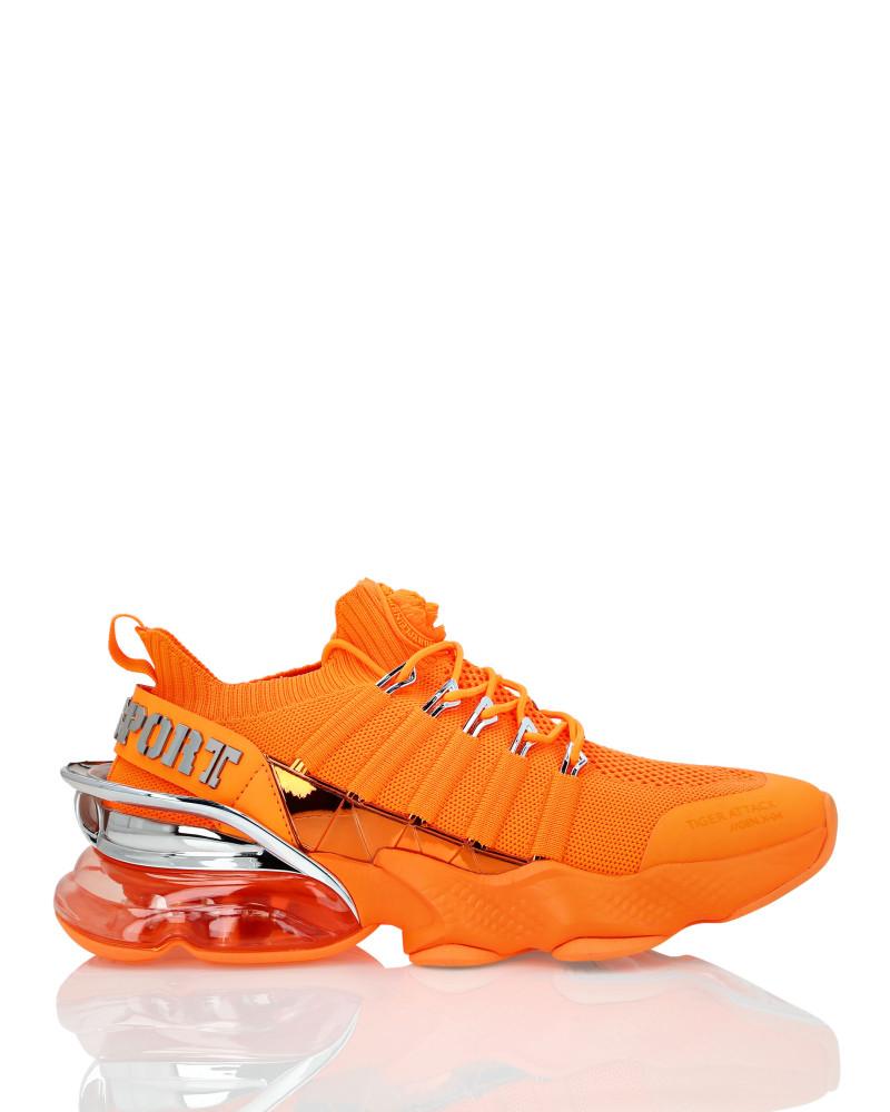 Беговые кроссовки Tiger Attack Gen. X.04 созданы, чтобы помочь вам выйти за пределы своих возможностей благодаря высокотехнологичным материалам и привычному стилю Plein Sport. ● Верхняя часть кроссовок из дышащей сетки для удобной и эргономичной посадки ● Эластичные трубчатые шнурки с металлическими люверсами ● Ремешок с логотипом и вставка на пятке ● Металлические стабилизаторы пятки с гальваническим покрытием ● Амортизирующая, ультралегкая, прозрачная резиновая межподошва из высокотехнологичного материала ● Рифленая подошва для оптимального сцепления с поверхностью ● Съемная стелька